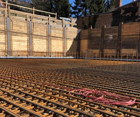 Das Projekt besteht neben dem Neubau auch aus der anschließenden Revitalisierung des Altbaus und setzt mithilfe von Photovoltaikanlage, Wärmepumpe und Ladesäulen für die E-Mobilität neue Maßstäbe im Bereich der Nachhaltigkeit. Der KFW-40-Standard ist so selbstverständlich wie die Barrierefreiheit des gesamten Komplexes.